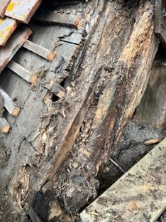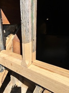 As can be seen, the timbers of the window and its supporting structure were in a very poor state but are now fully restored. The scarf jointing connecting the new to the old is an exquisite piece of craftsmanship, angled down and out to allow any water ingress to run away from the joint.